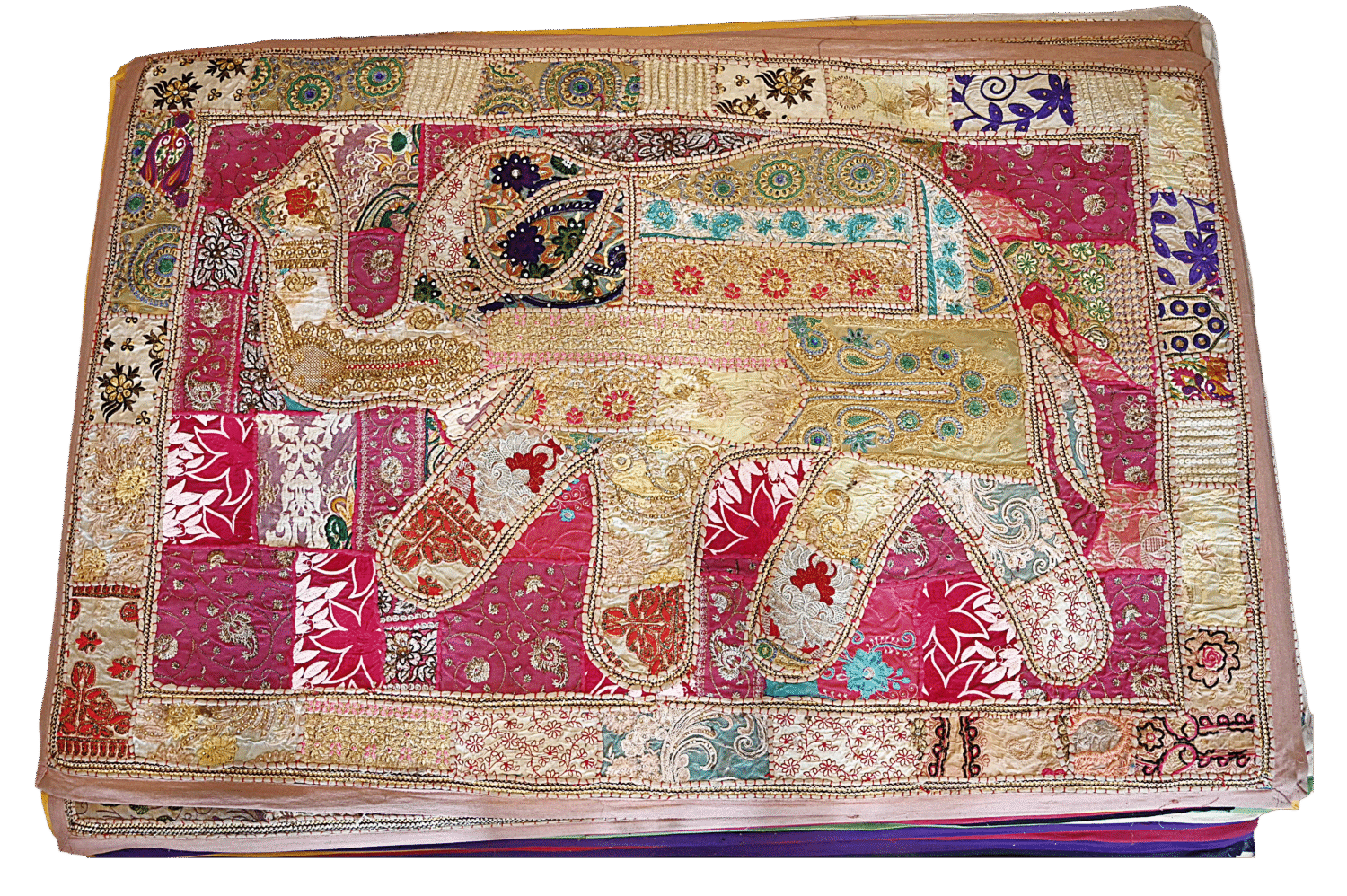 • 🧵 Pattern: Elephant motif with floral and paisley designs