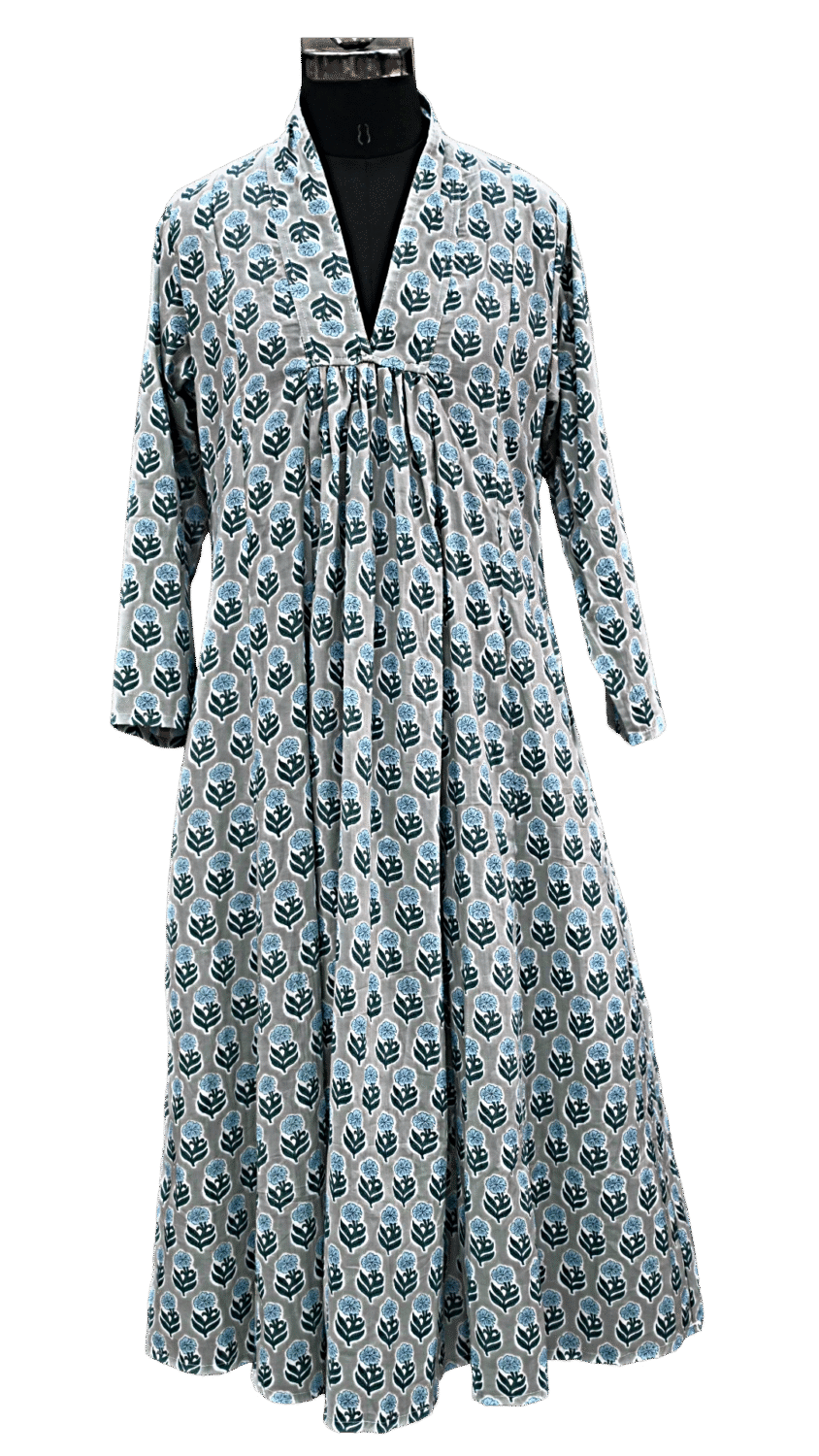- 🎨 Colour: Grey with Blue & Green Floral Print