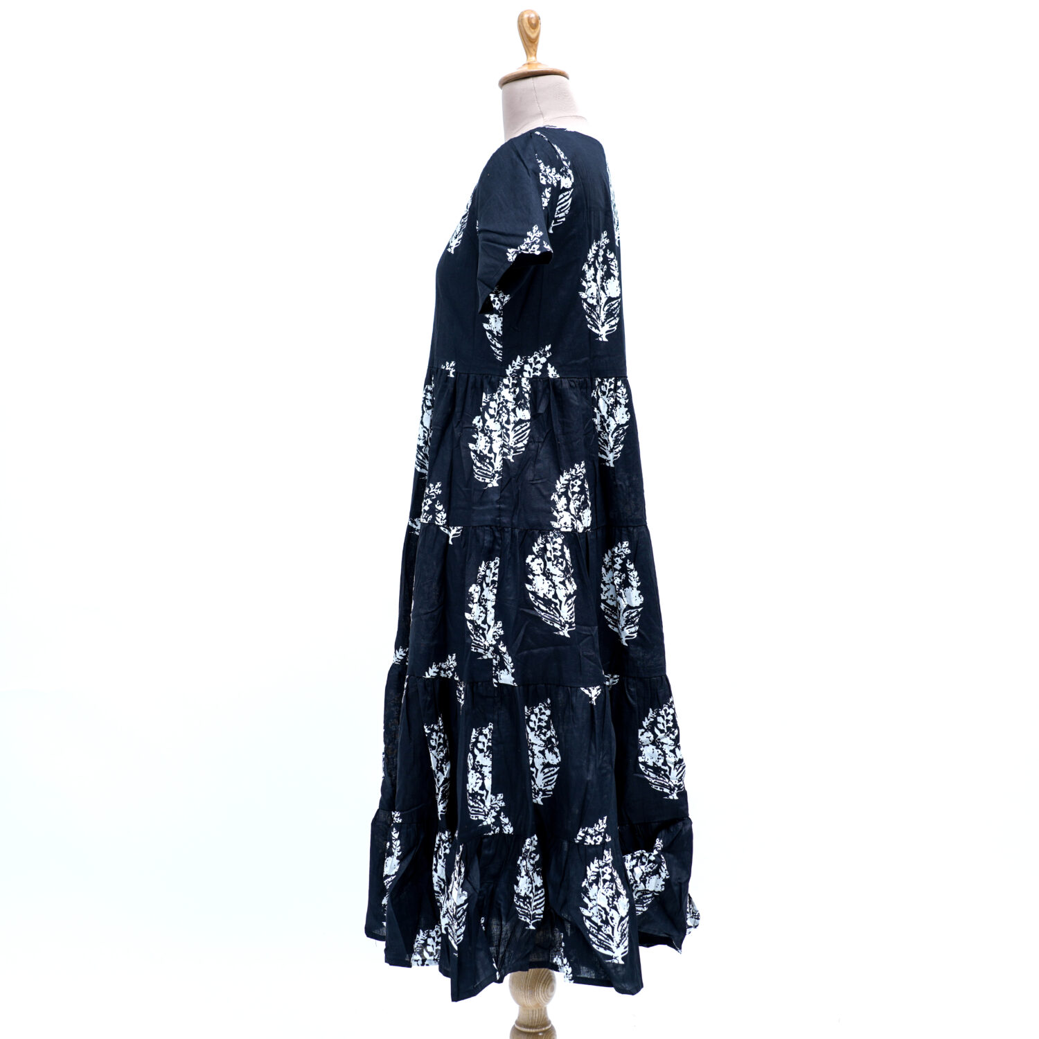 - Pattern: Graceful tiered design with intricate floral prints