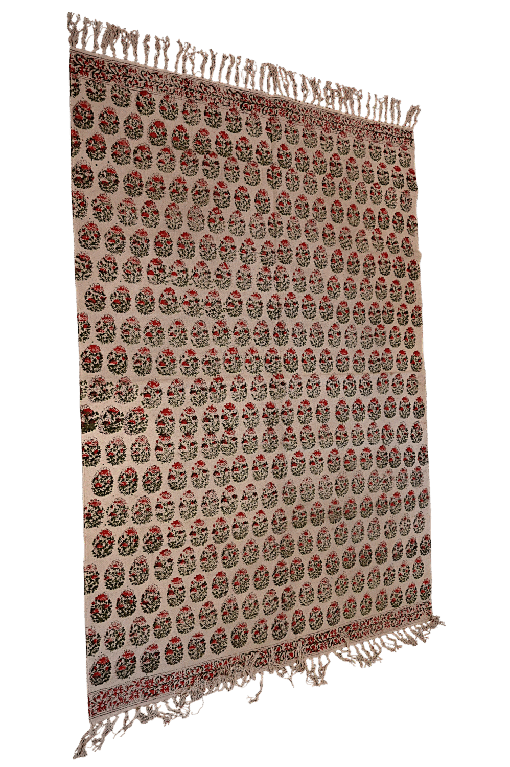 - 🧵 Pattern: Hand-block floral design with blue roses and leafy stems